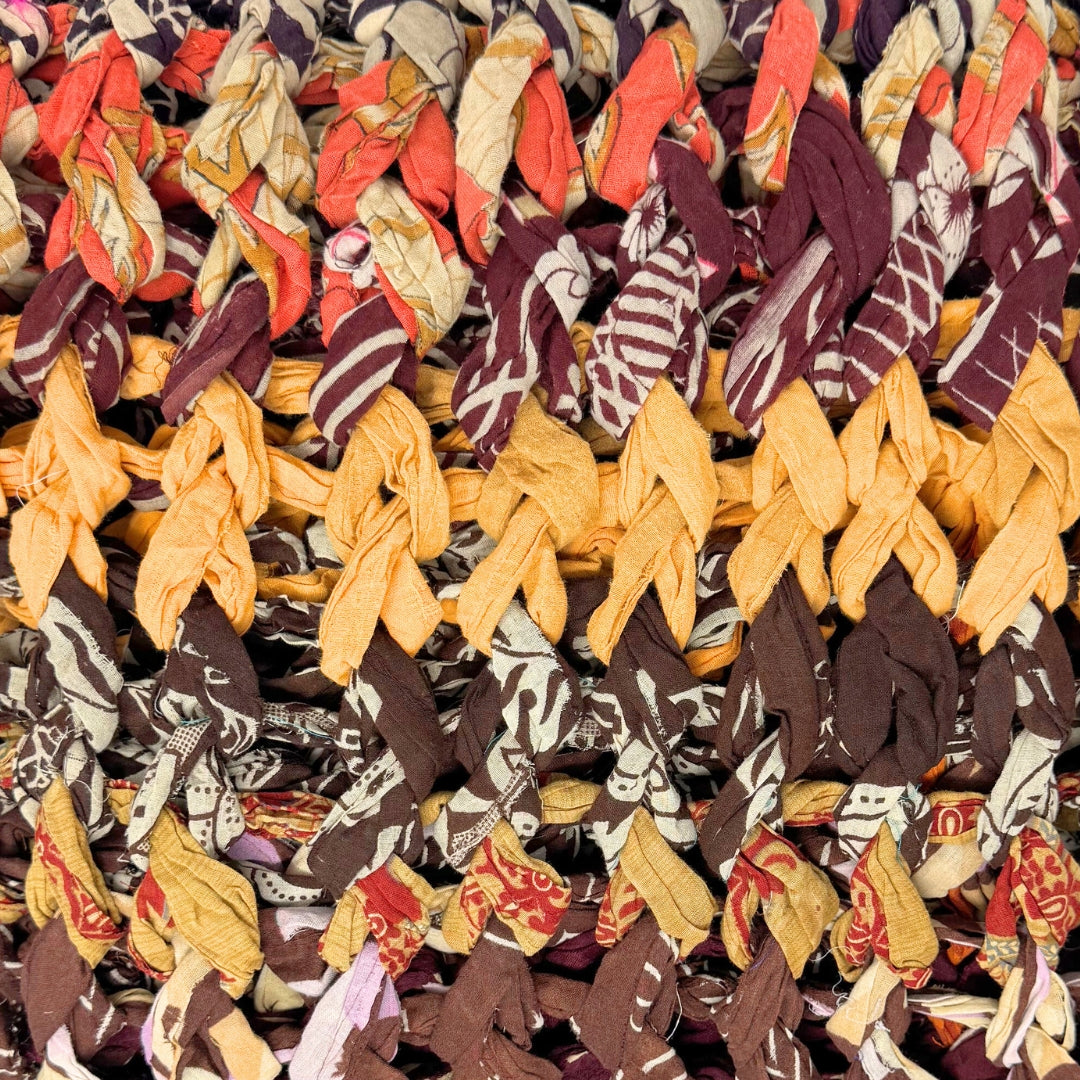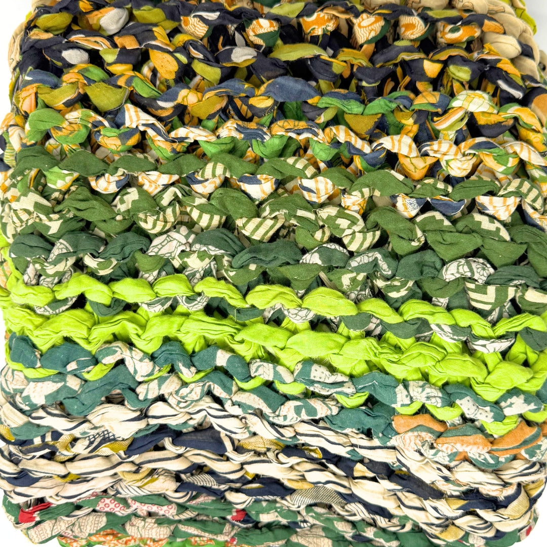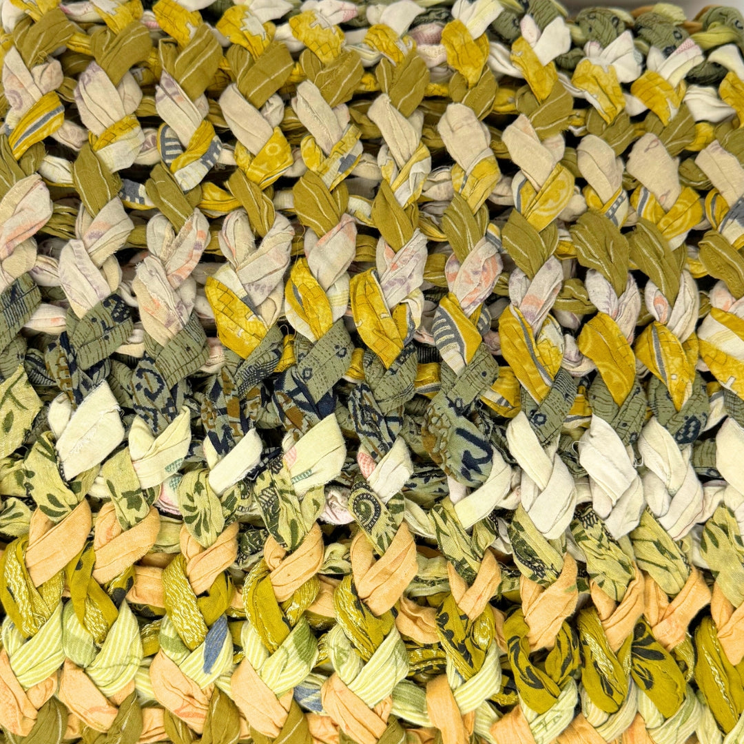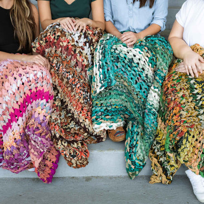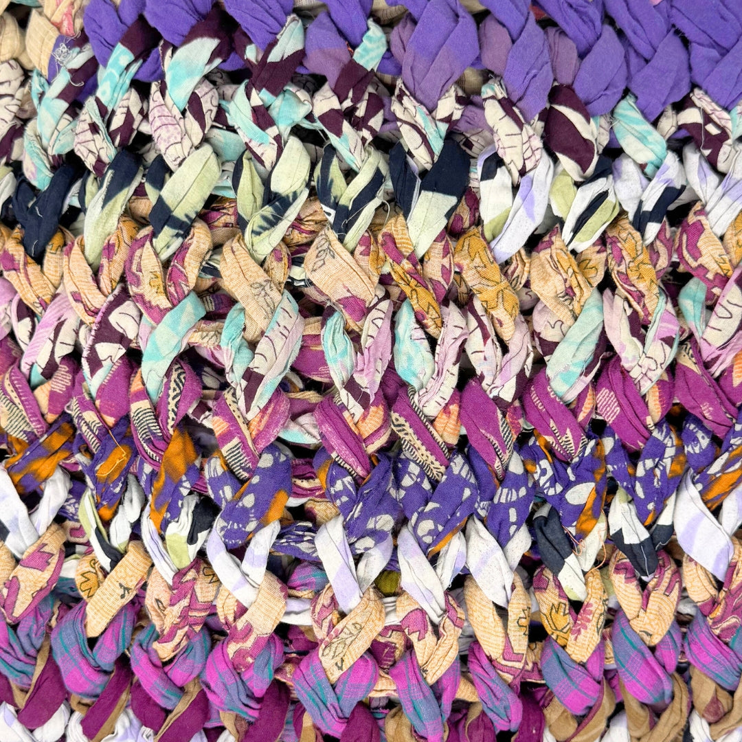 Introducing our vibrant and eco-friendly chunky knit blankets, expertly peg loomed using up-cycled sari cloth. These blankets showcase a stunning array of colors and patterns, each one unique due to the nature of the reclaimed materials. The up-cycled sari cloth gives these blankets a rich texture and a touch of cultural heritage, making them not only beautiful but also meaningful. These chunky knit blankets are not just functional but also add a touch of bohemian elegance to any space. The thick, woven texture provides warmth and comfort, making them perfect for snuggling up during colder months or as a decorative throw year-round.