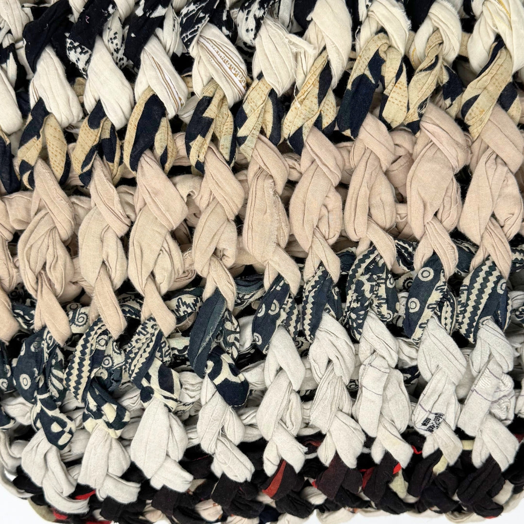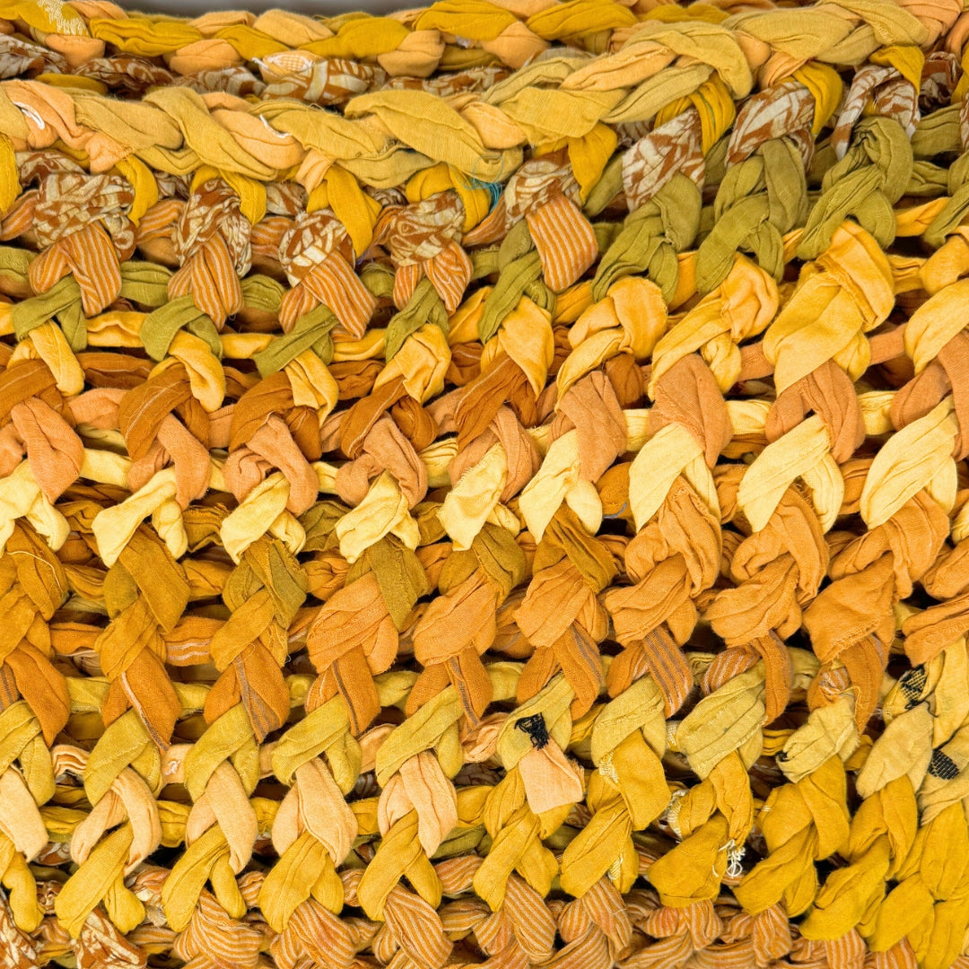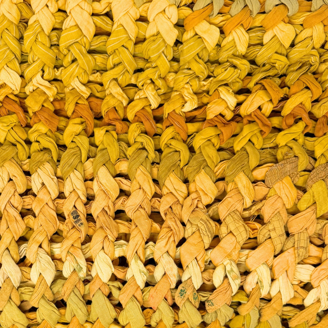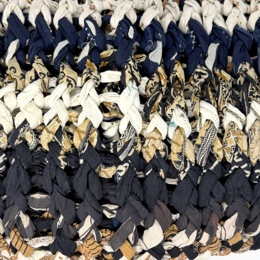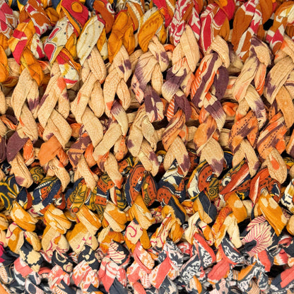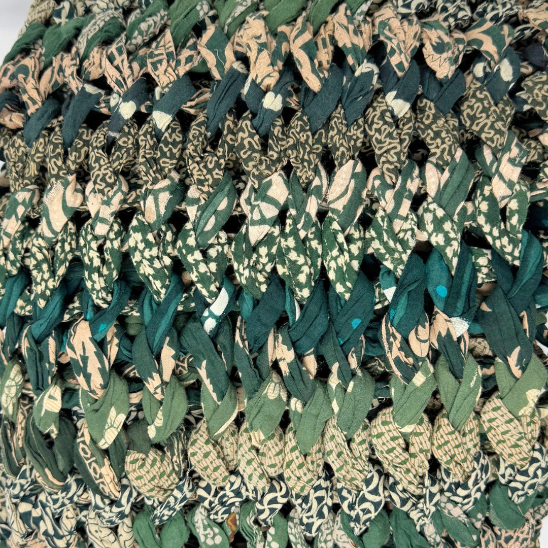 Introducing our vibrant and eco-friendly chunky knit blankets, expertly peg loomed using up-cycled sari cloth. These blankets showcase a stunning array of colors and patterns, each one unique due to the nature of the reclaimed materials. The up-cycled sari cloth gives these blankets a rich texture and a touch of cultural heritage, making them not only beautiful but also meaningful. These chunky knit blankets are not just functional but also add a touch of bohemian elegance to any space. The thick, woven texture provides warmth and comfort, making them perfect for snuggling up during colder months or as a decorative throw year-round.