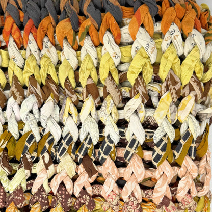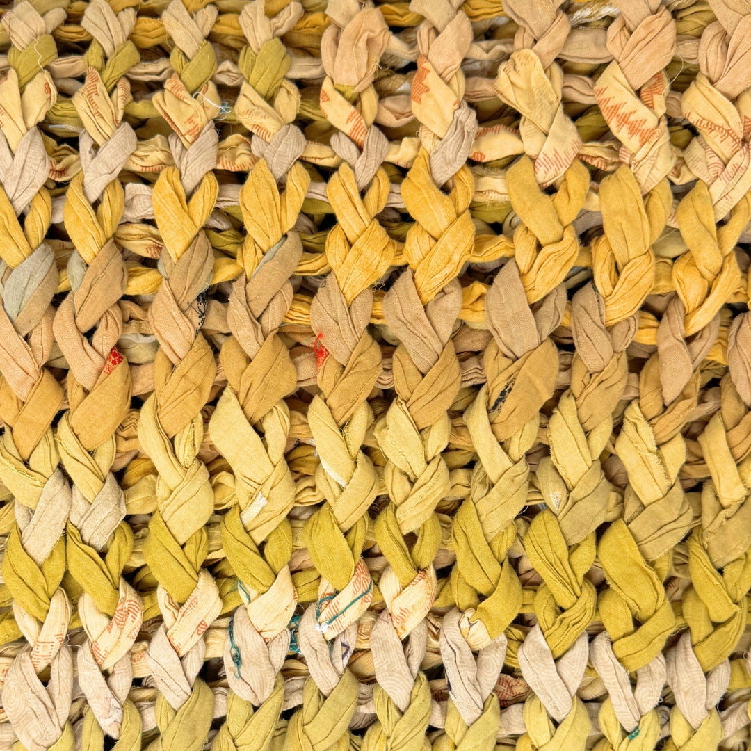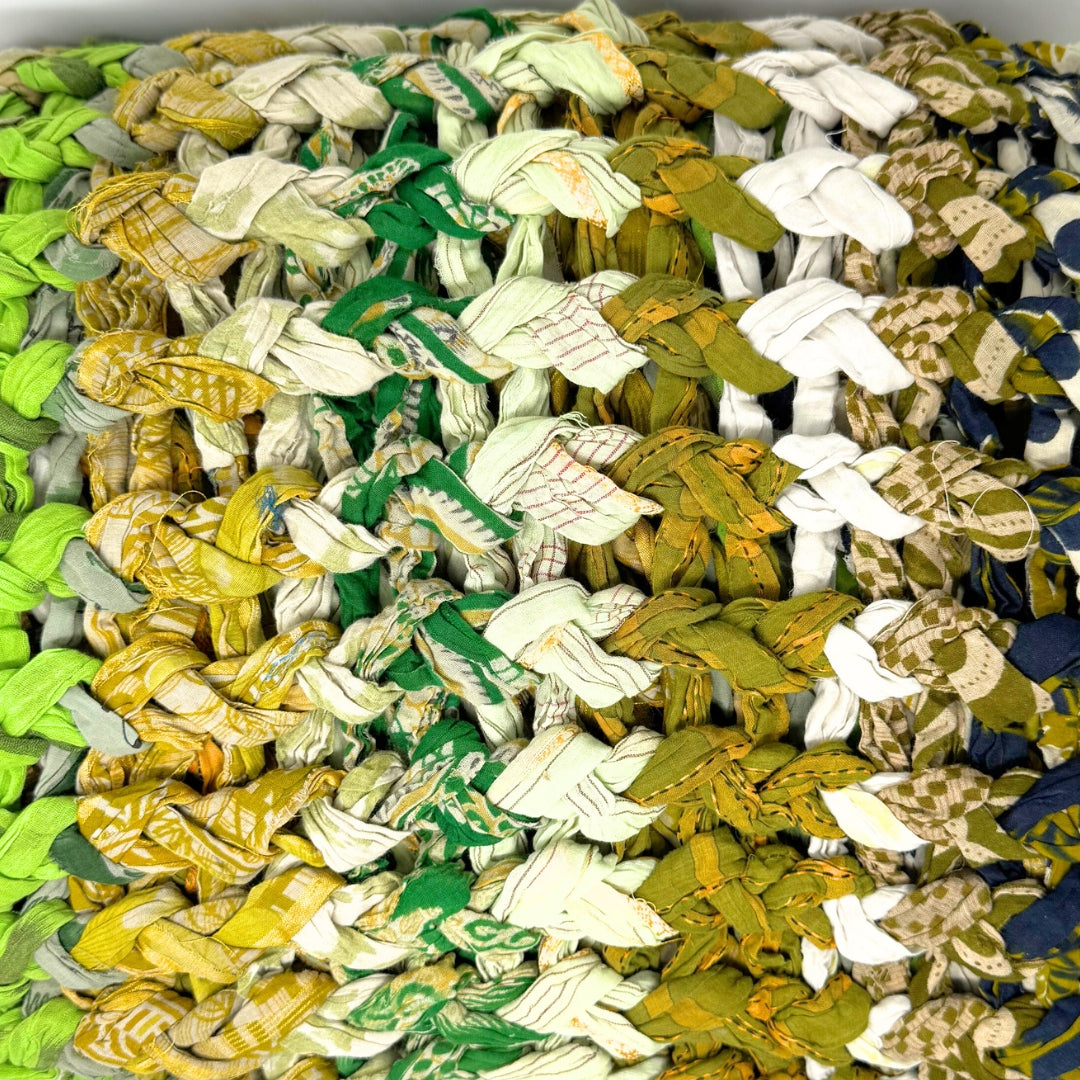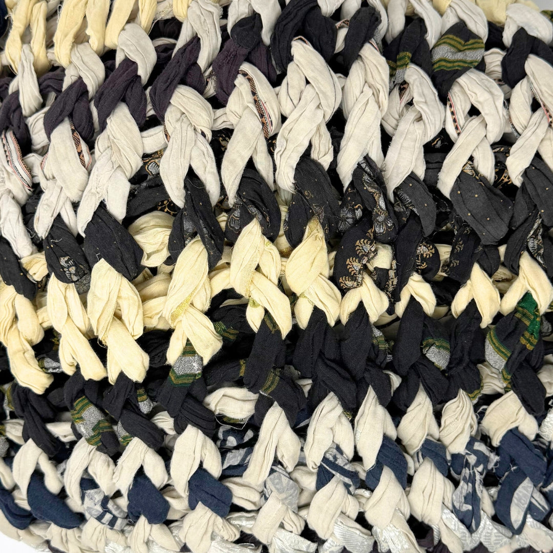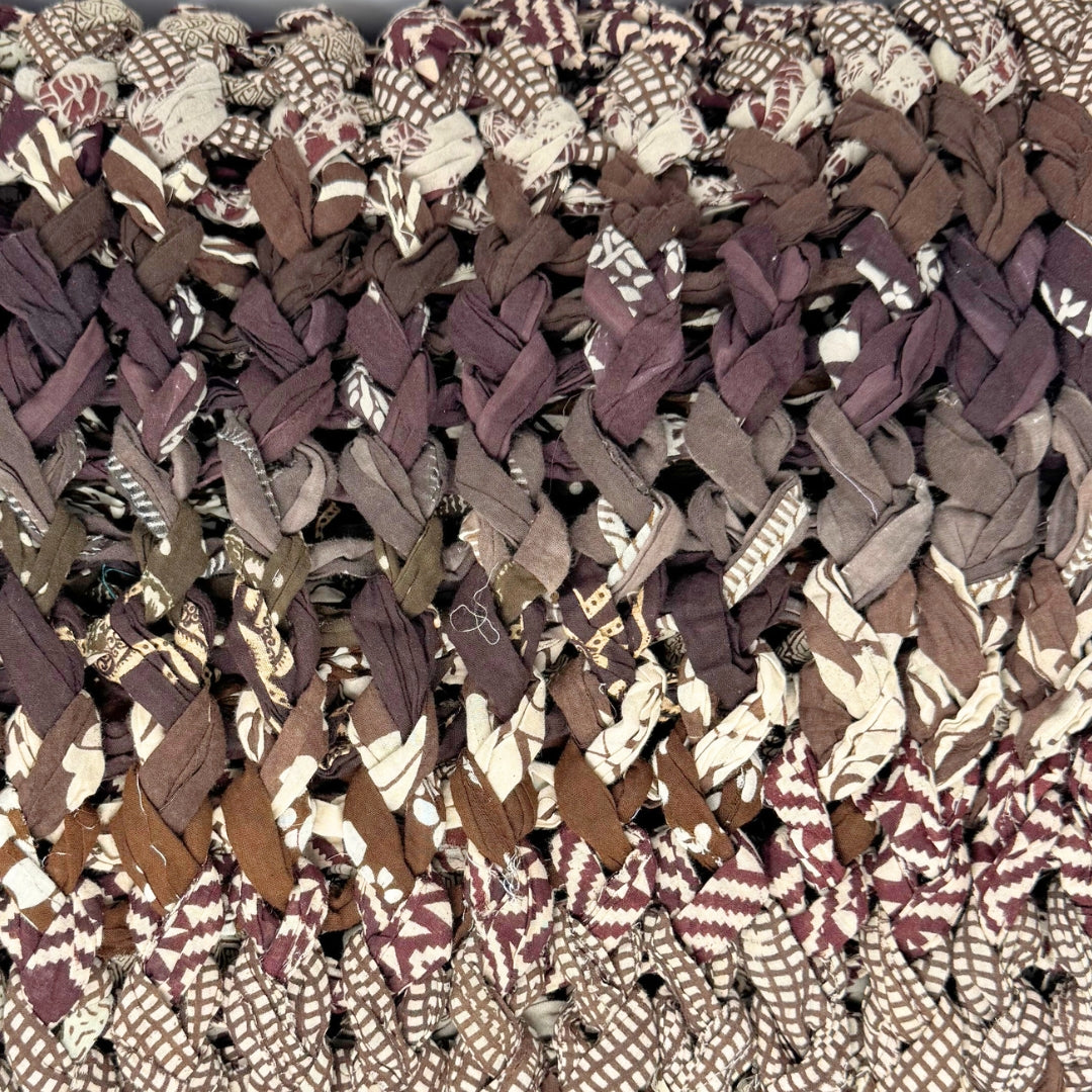 Introducing our vibrant and eco-friendly chunky knit blankets, expertly peg loomed using up-cycled sari cloth. These blankets showcase a stunning array of colors and patterns, each one unique due to the nature of the reclaimed materials. The up-cycled sari cloth gives these blankets a rich texture and a touch of cultural heritage, making them not only beautiful but also meaningful. These chunky knit blankets are not just functional but also add a touch of bohemian elegance to any space. The thick, woven texture provides warmth and comfort, making them perfect for snuggling up during colder months or as a decorative throw year-round.