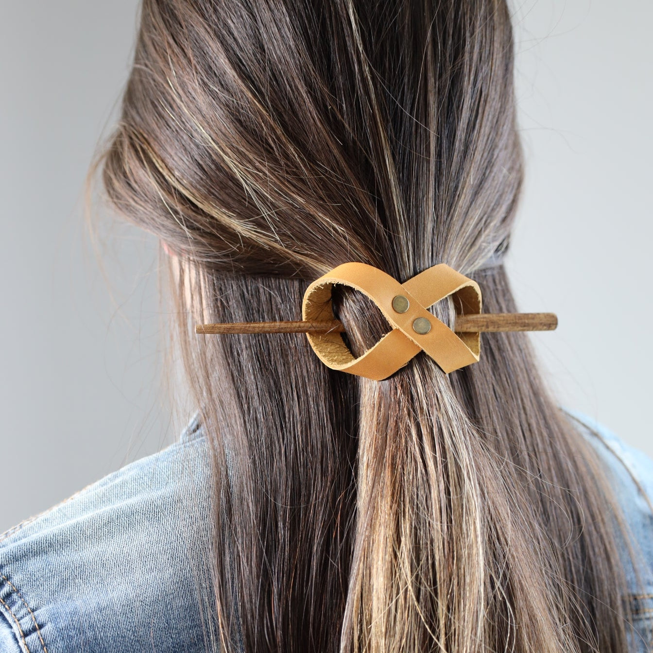 The Eons Hair Pin is the perfect accessory to add a touch of uniqueness and style to your hair. Made from vegetable tanned leather, it comes in two chic colors. Elevate your hairdos with these distinctive and funky hair pins.