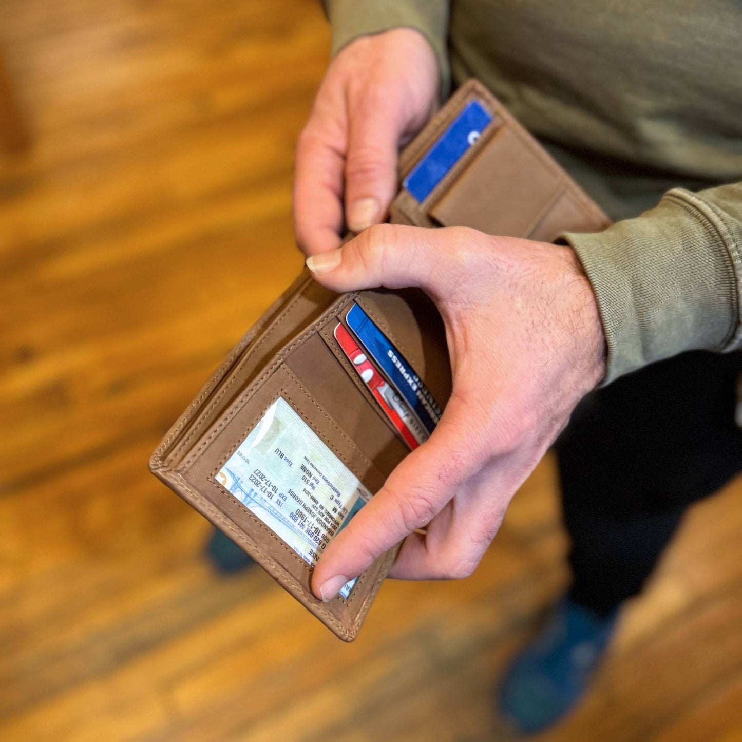 Introducing the Liam Wallet - crafted from soft dusty leather, this inconspicuous yet spacious design is perfect for keeping your cards organized. Enjoy the sleek look and practical functionality this wallet has to offer.