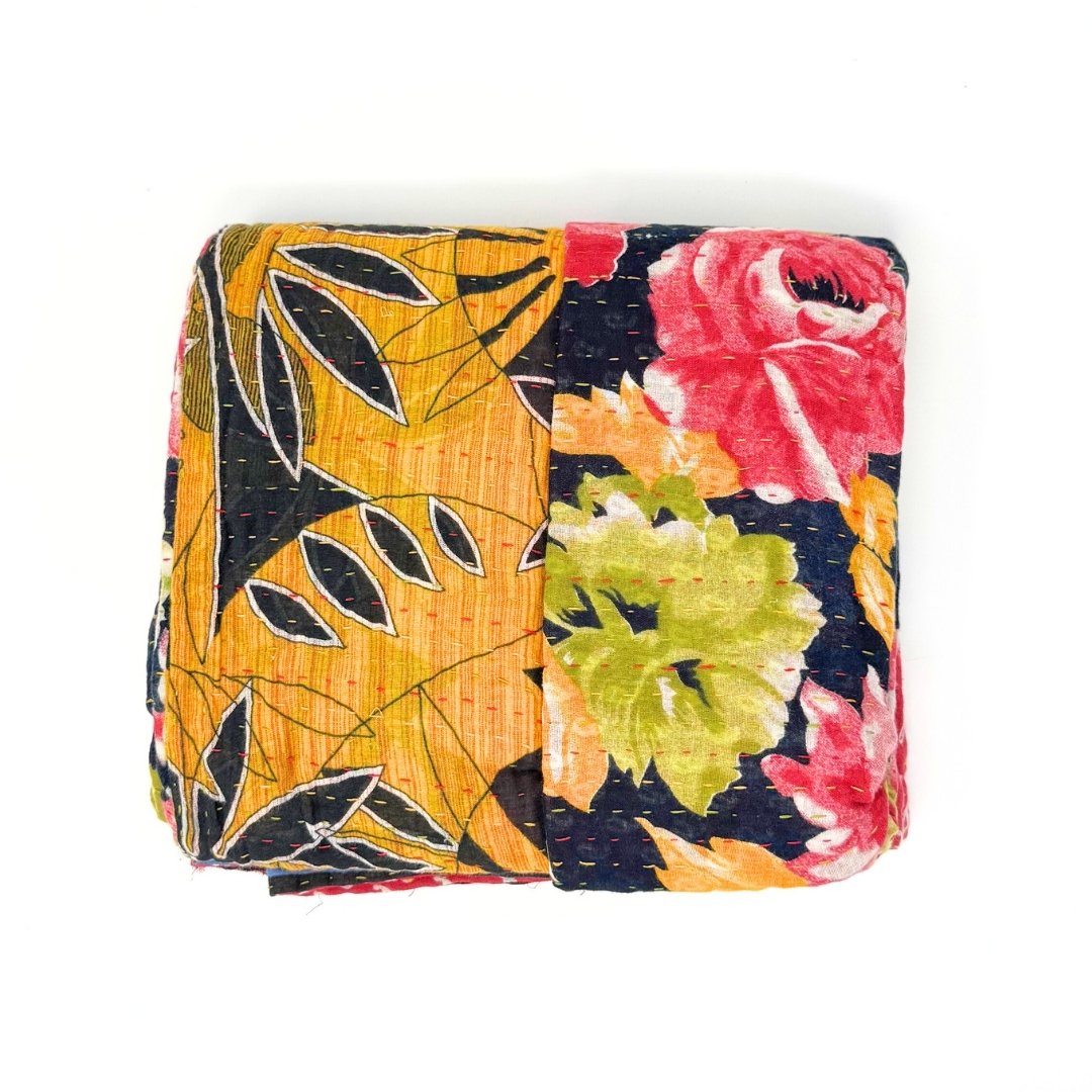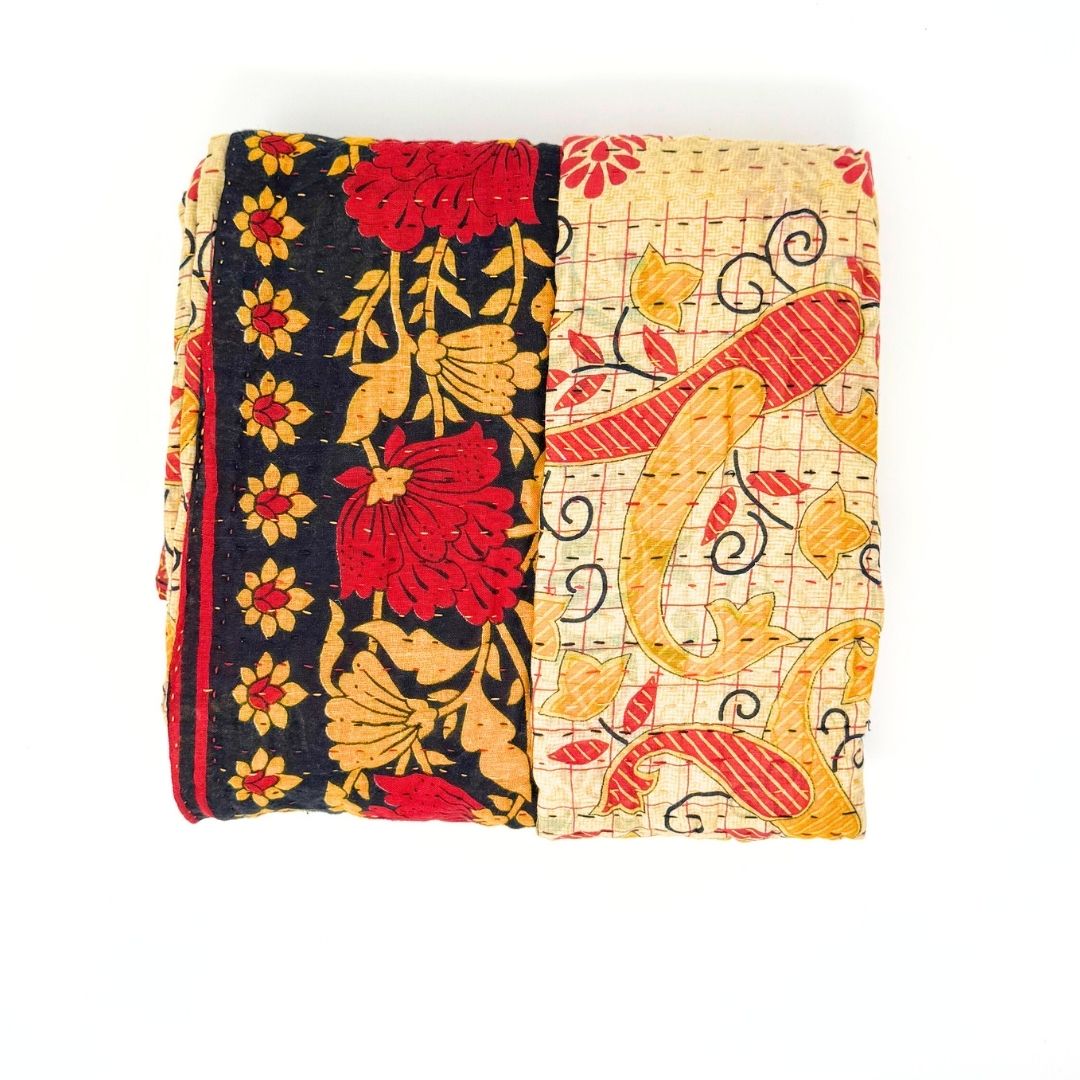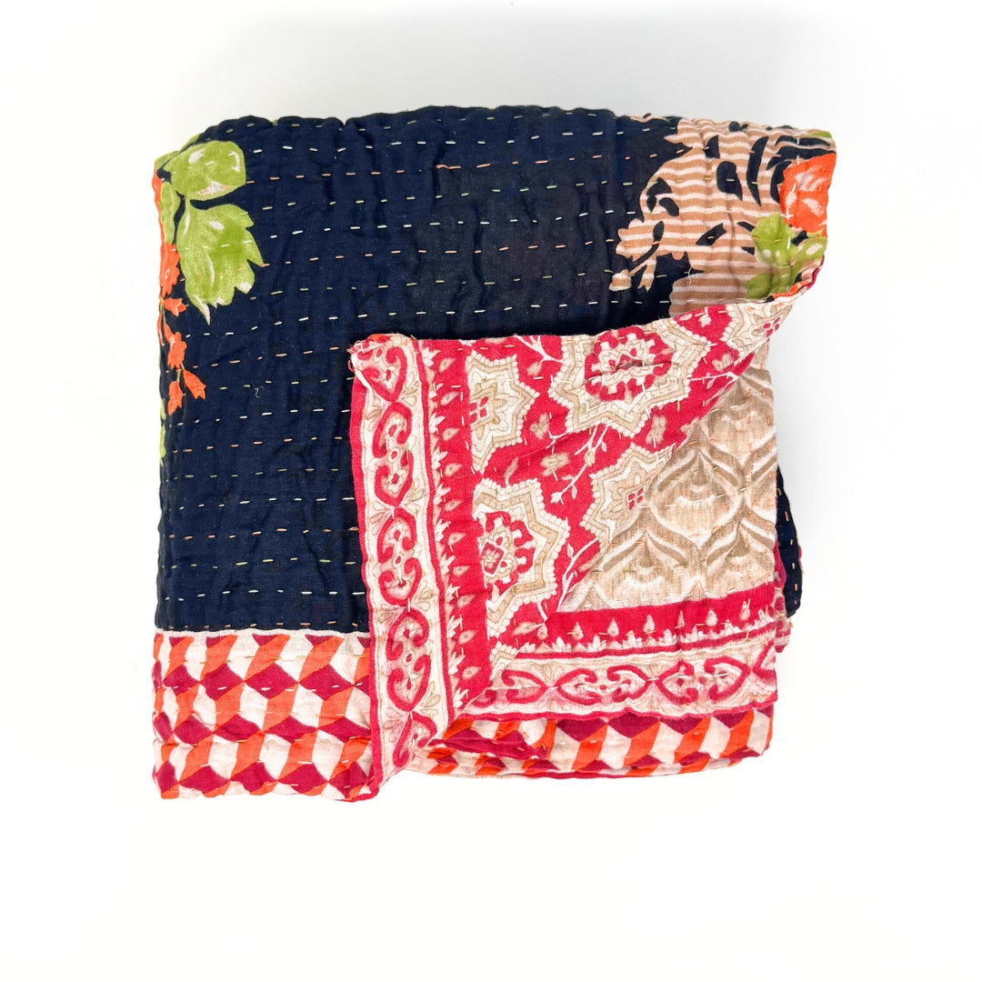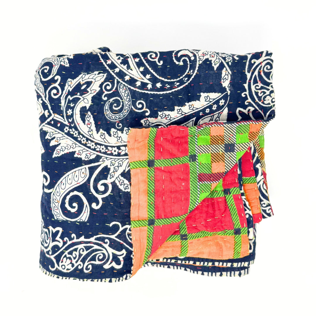 The artistry of these kantha blankets are incredible workmanship! I loved being able to see the unique patterns of each blanket prior to choosing, and knowing that each one is one of a kind. The blankets are soft, but also super durable for every day cuddles on the couch and throwing in a bag for trips! Highly recommend!