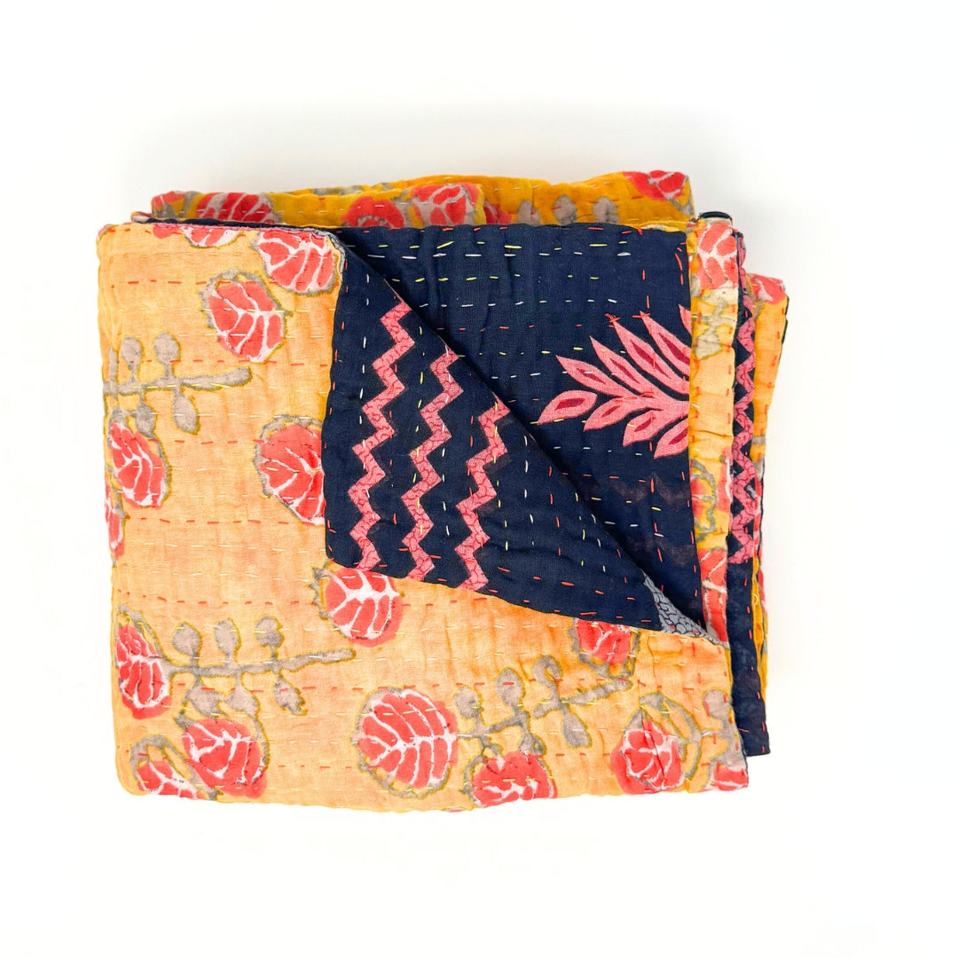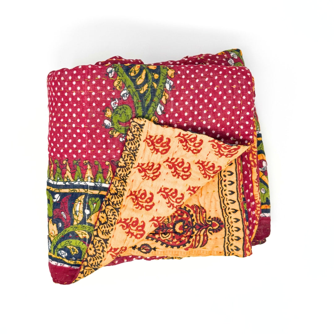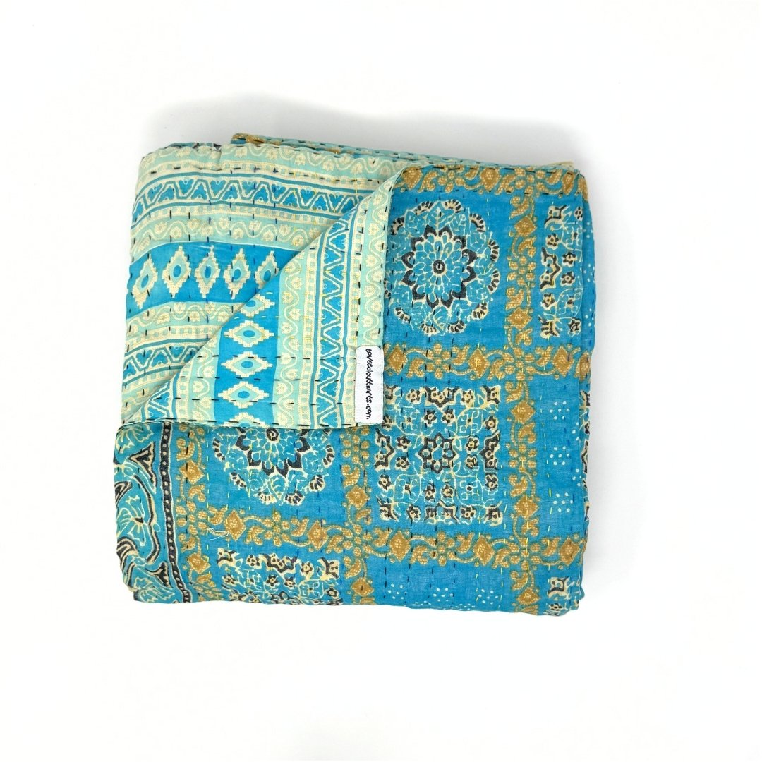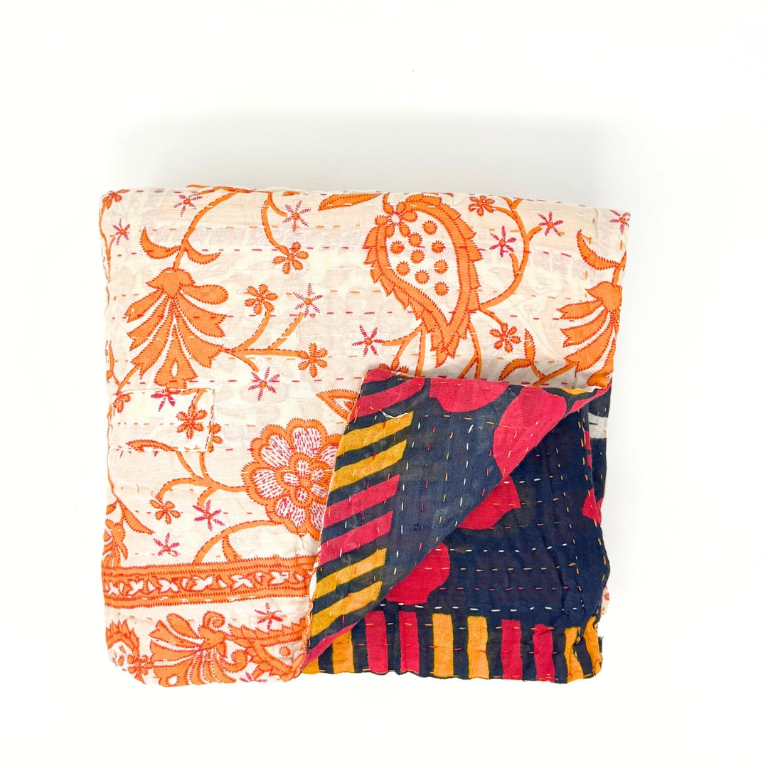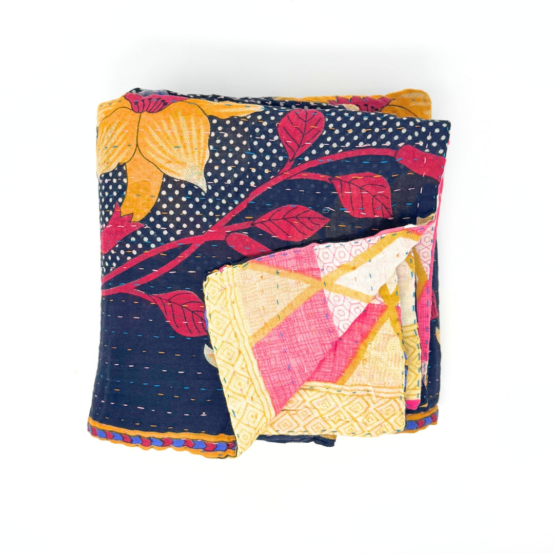 The artistry of these kantha blankets are incredible workmanship! I loved being able to see the unique patterns of each blanket prior to choosing, and knowing that each one is one of a kind. The blankets are soft, but also super durable for every day cuddles on the couch and throwing in a bag for trips! Highly recommend!