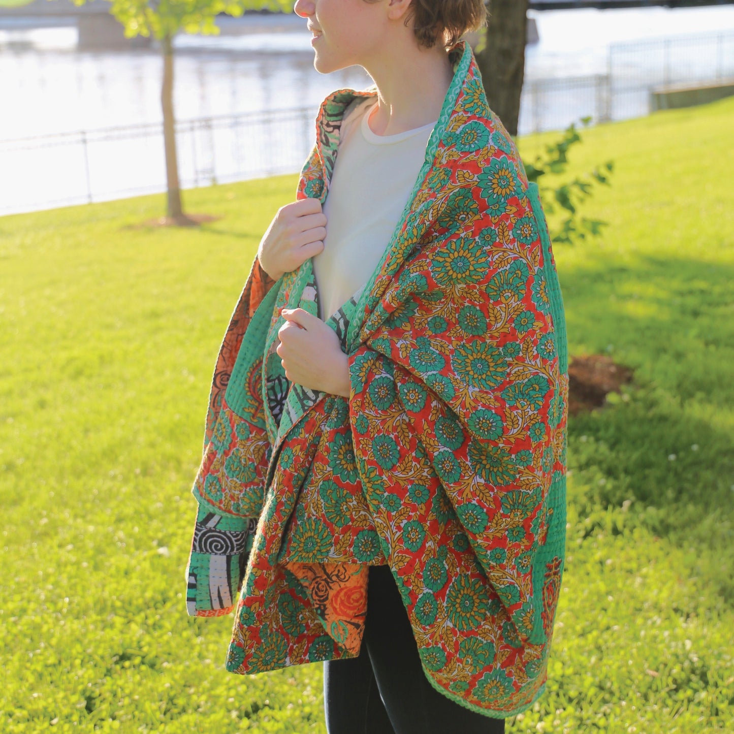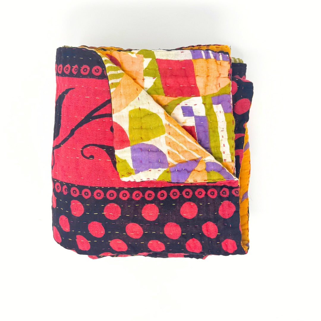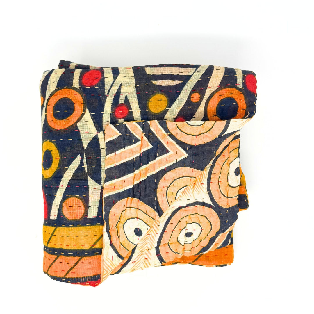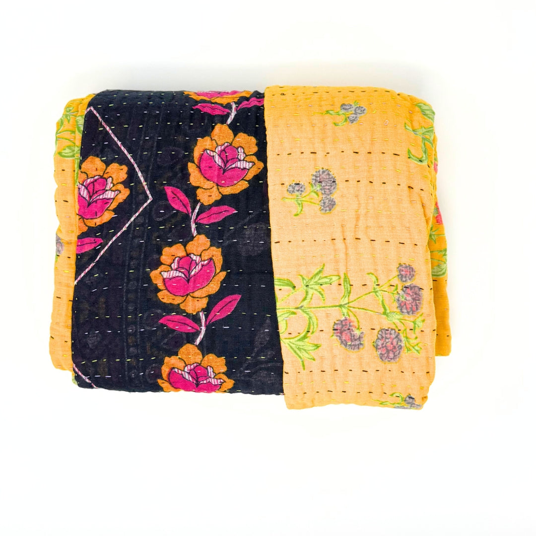 The artistry of these kantha blankets are incredible workmanship! I loved being able to see the unique patterns of each blanket prior to choosing, and knowing that each one is one of a kind. The blankets are soft, but also super durable for every day cuddles on the couch and throwing in a bag for trips! Highly recommend!