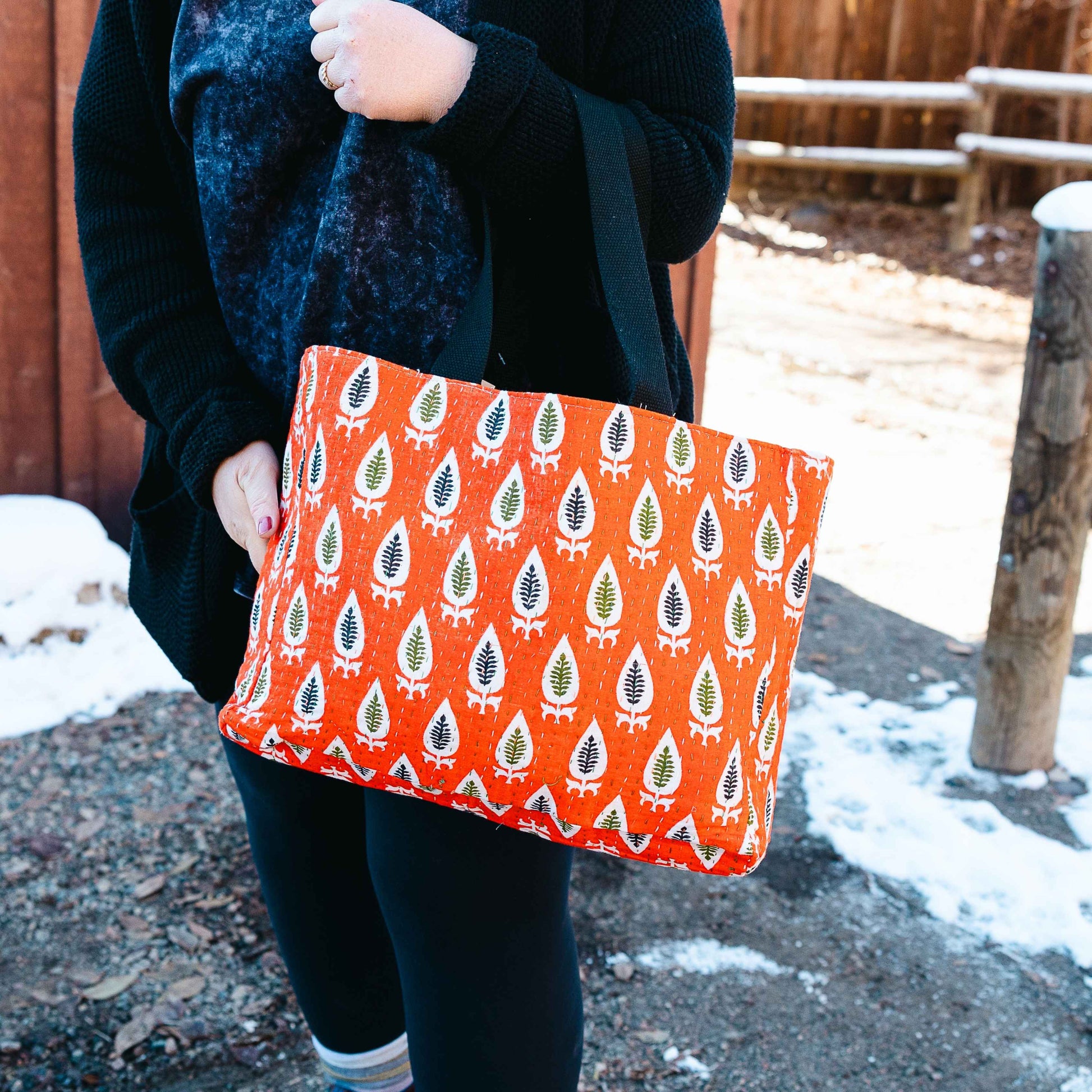 Crafted with artistry and purpose, this bag combines the vibrant charm of kantha-stitched sari fabric with a natural canvas lining, bringing together style and functionality. Inside, you’ll find thoughtful organization with a secure internal zip pocket, a gusseted zip pocket for easy access, and a bottle holder to keep your drink upright. A padded laptop sleeve with a metallic button adds both protection and elegance, making this bag as practical as it is unique. Due to the use of recycled saris, each piece features its own unique blend of colors and patterns, ensuring no two bags are alike.