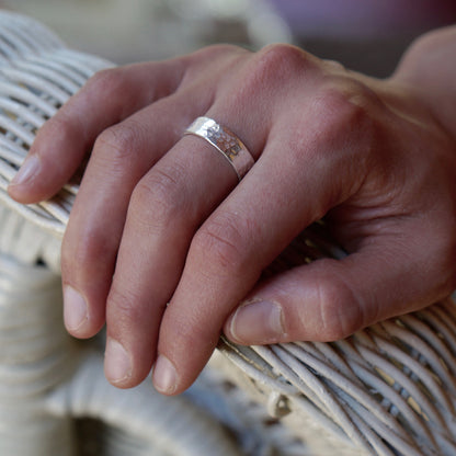 Transform your style with Ruth Rings. This semi-adjustable ring boasts a hammered finish with the option to customize for the perfect fit. Its simple, elegant design is versatile for any occasion. Approx. 5/16" in size, it adds a touch of luxury to your ensemble.
