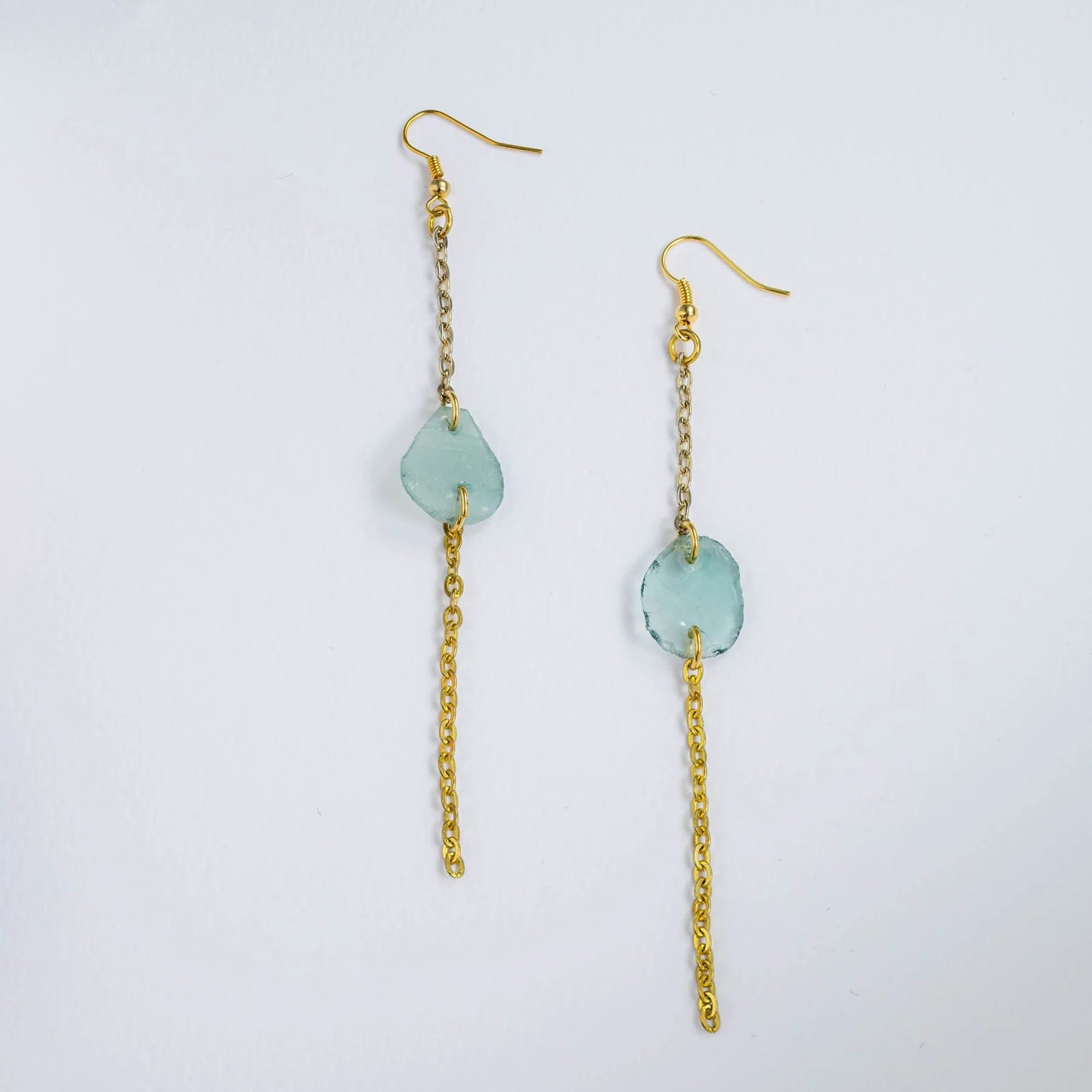 Indulge in the opulent beauty of our Tranquility Earrings. These refined accessories boast intricate gold micon detailing, coupled with a gold plated brass chain and faux Roman glass accents. Elevate any ensemble with these luxurious and timeless earrings.