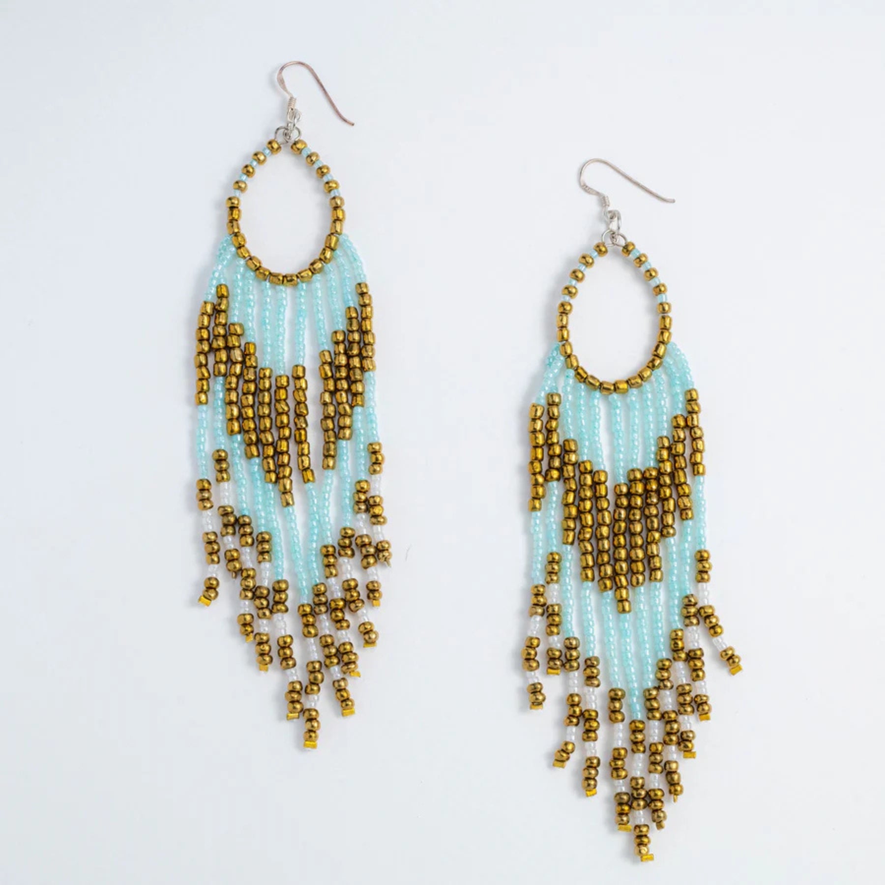 Experience the ethereal beauty of our Waves of Grace Earrings. Handcrafted with a sterling silver hoop and adorned with intricate beadwork using high-quality Korean beads, these bohemian-inspired earrings will add a touch of elegance to any outfit. Embrace the grace of the waves with this unique and luxurious design.